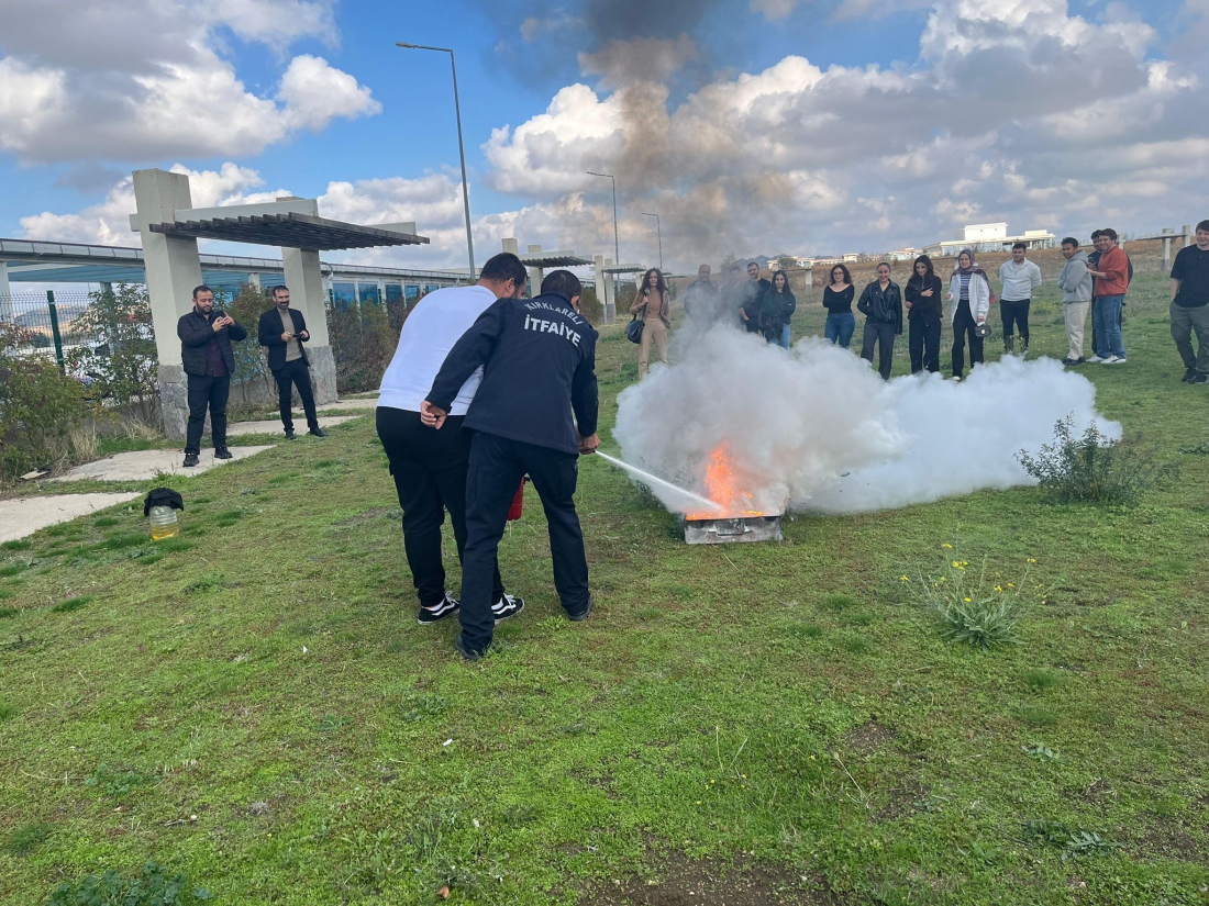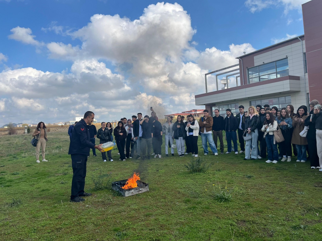 Eğitim kapsamında öğrencilere yangın türleri, yangın söndürme tüplerinin tipleri, yangın sebepleri ve yangına müdahale yöntemleri hakkında teorik bilgiler aktarıldı. Ayrıca, yangın söndürme tüpü kullanımı ve yangına müdahale uygulamaları yapıldı. Eğitimin gerçekleştirilmesinde emeği geçen Kırklareli İtfaiyesi ekiplerine teşekkür ederiz.