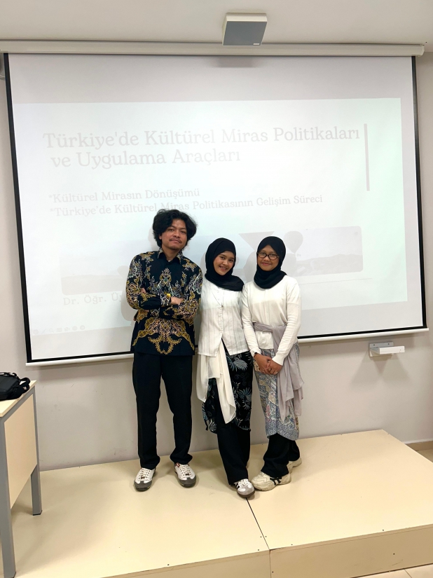 Fakültemiz bünyesinde tüm bölümlerde ortak zorunlu ders olarak yürütülen “Kültürel Miras Yönetimi” dersinde, Rekreasyon Yönetimi Bölümü öğretim üyelerinden Dr. Öğr. Üyesi Damla ERDEM koordinasyonunda öğrenciler, farklı kültürlere ait geleneksel kıyafet ve kültürel öğeleri tanıtan sınıf içi sunumlar gerçekleştirmiştir. Etkinlik kapsamında öğrenciler; Erzincan yöresine özgü Kutnu ve Salta takımı, Ordu’ya özgü Gıdık sepeti ve Keşan şalı, Endonezya kültürünü yansıtan Batik giysisi gibi çeşitli geleneksel kıyafet ve kültürel ürünleri tanıtmıştır. Sunumlarda, Batik giysisinin pamuk ve ipekten üretildiği, en eski batik tekniklerinin hamur ile kapama ve mum ile kapama yöntemleri olduğu; ayrıca Batik geleneğinin 2009 yılında UNESCO’nun İnsanlığın Somut Olmayan Kültürel Miras Listesi’ne dahil edildiği bilgilerine de yer verilmiştir. Öğrenciler, tüm bu örneklerin tarihsel kökenlerini, sosyal ve kültürel bağlamlarını, kullanılan malzemeleri ve üretim tekniklerini araştırarak sınıf arkadaşlarıyla paylaşmıştır.