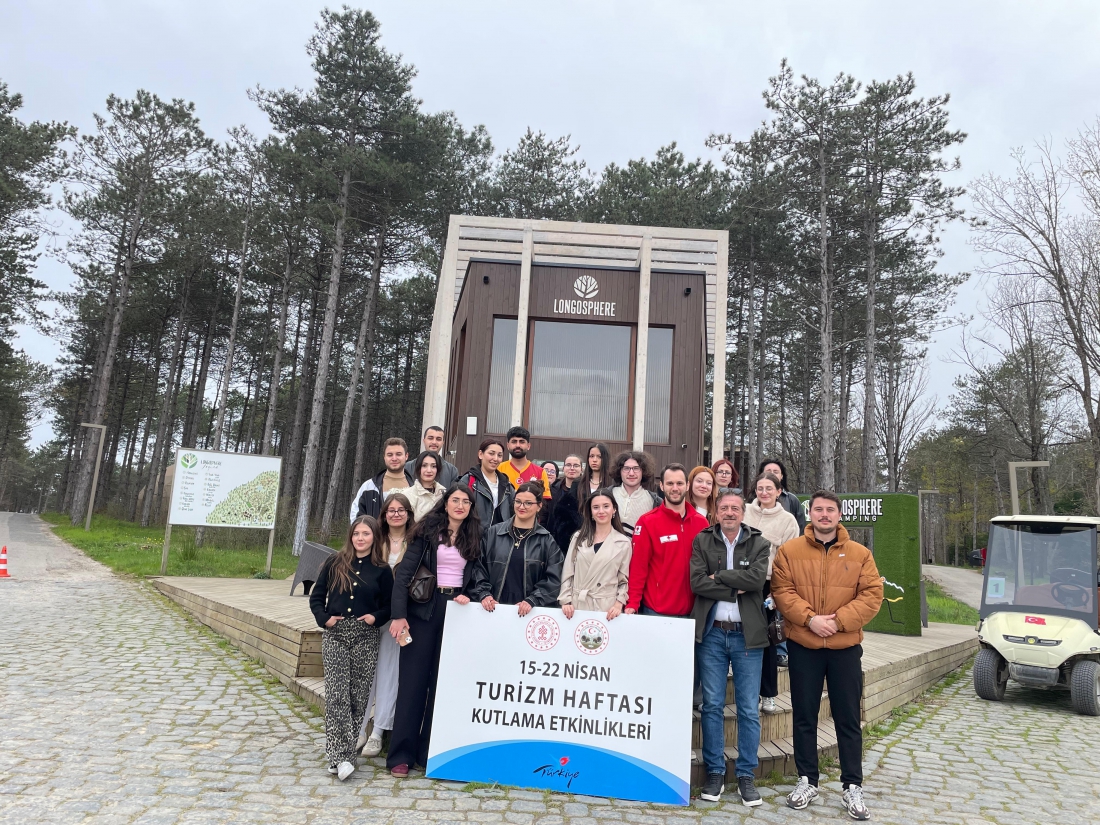 Programın devamında Longosphere Glamping tesisi ziyaret edildi. Burada ilk olarak Önbüro Müdürü Sayın Mustafa İLTERALP tarafından öğrencilere tesisin genel yapısı, hizmet alanları ve işleyişi hakkında bilgi verilerek tesis gezdirildi. Ardından tesis bünyesindeki restoranda öğle yemeği servisi gerçekleştirildi. Öğle yemeğinin ardından öğrenciler, ok atma etkinliği ile macera parkuru aktivitelerine katılarak uygulamalı deneyim kazanma fırsatı elde etti. Program, gerçekleştirilen etkinliklerin ardından sona erdi.