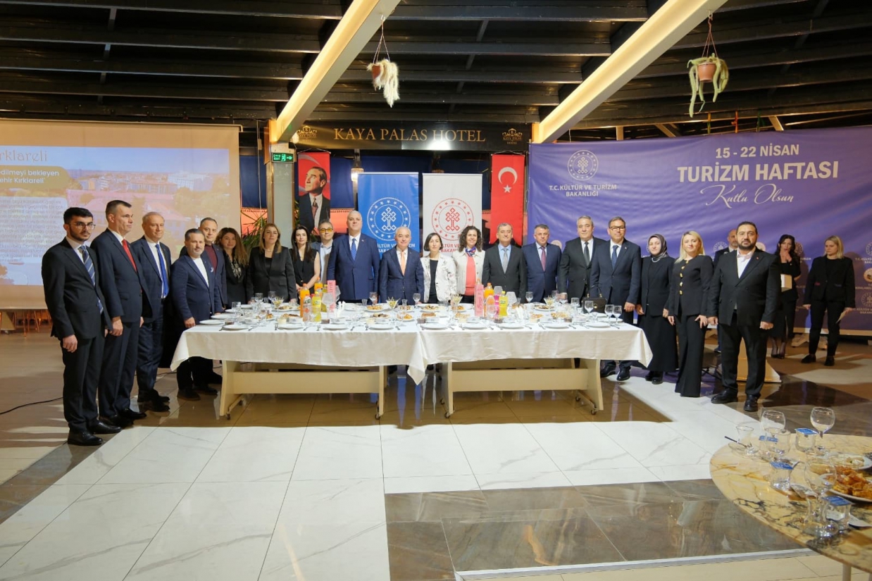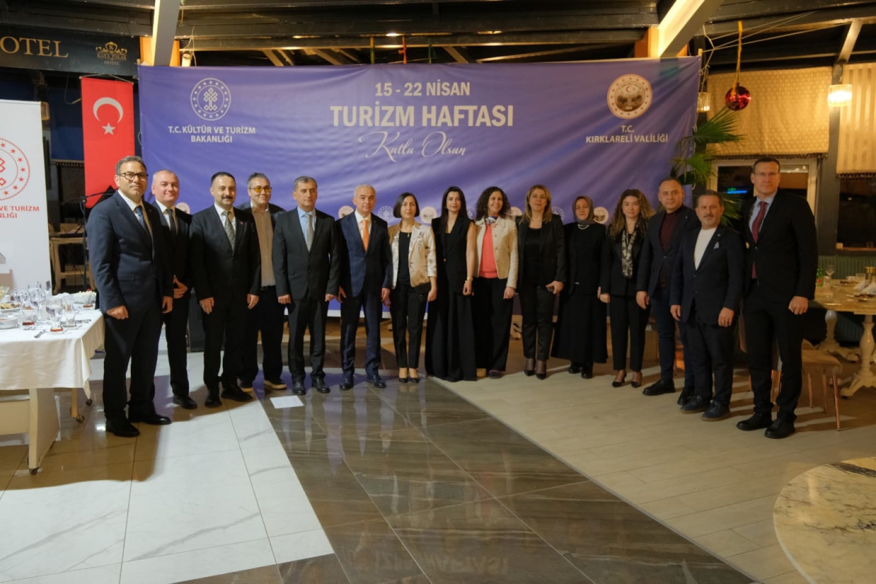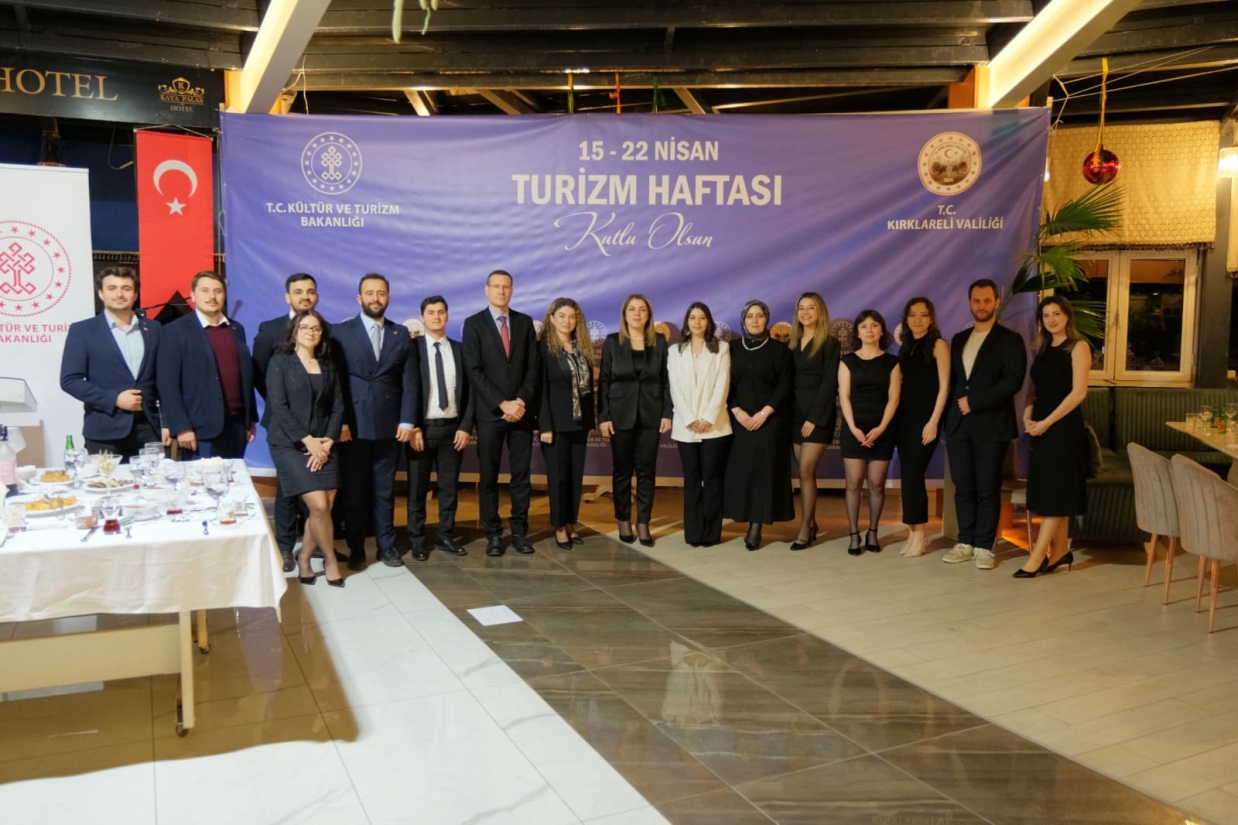 Turizm Haftası kapsamında 17 Nisan Cuma günü Kırklareli İl Kültür ve Turizm Müdürlüğü tarafından resepsiyon programı düzenlendi. Programa Kırklareli Valisi Uğur TURAN, Rektörümüz Prof. Dr. Rengin AK, Dekanımız Prof. Dr. Mustafa Cevdet ALTUNEL Garnizon Komutanı Tuğg. Erdal Köse, Kırklareli Belediye Başkan Yardımcısı Kürşad YAMANER, il protokolü, Fakültemiz akademik kadrosu, kurum temsilcileri ve davetliler katıldı. Programda açılış konuşmasını İl Kültür ve Turizm Müdürü Veli ŞEN yaptı. Yapılan konuşmalarda Kırklareli’nin doğal, tarihi, kültürel ve gastronomi değerlerinin korunarak tanıtılmasının önemi vurgulanırken, sürdürülebilir turizm anlayışı doğrultusunda yürütülen çalışmaların kararlılıkla sürdürüleceği ifade edildi. Kırklareli’nin turizm potansiyelinin daha da güçlendirilmesinde tanıtım, altyapı ve kültürel etkinliklerin önemli rol oynadığına dikkat çekilen program, 2. Tarihin İzinde Kırklareli Macerası yarışmasında dereceye giren ekiplere ödüllerinin verilmesiyle sona erdi; yarışmada birinci olan ekibe İnemare Hotel ve Longosphere Glamping tarafından konaklama, ikinci ekibe ise Nişikli Turizm tarafından gidiş-dönüş otobüs bileti takdim edildi.